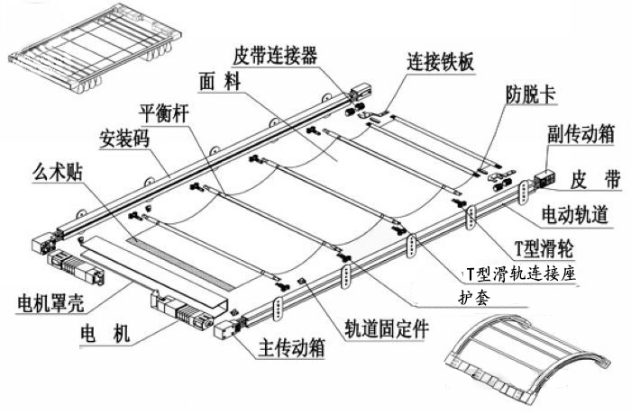 2)動力:大力距富力特雙輸出軸電機,確保履帶運行速度一致,保證天棚簾同步開合