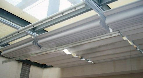 是固定在室內采光頂的頂部或側面形影玻璃采光頂的遮陽系統