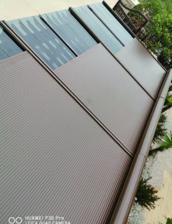 ◆戶外鋁合金遮陽天幕是一種新型采光頂外遮陽產品。